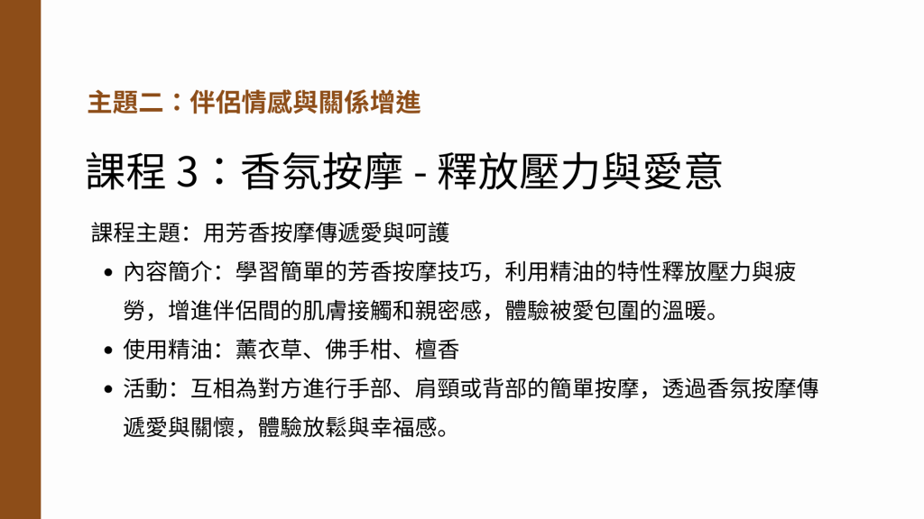 課程 3:香氛按摩 – 釋放壓力與愛意