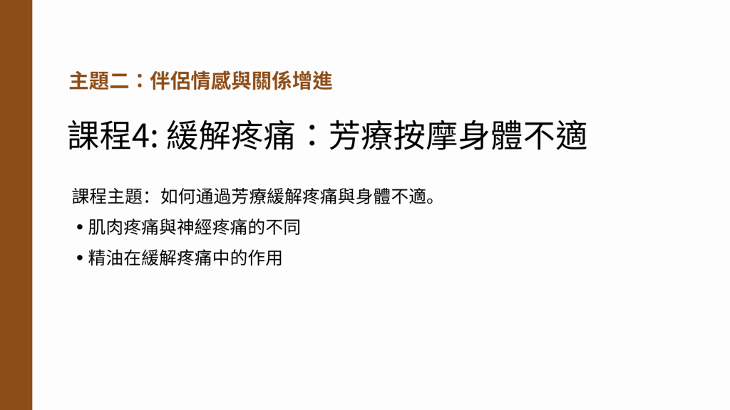課程4: 緩解疼痛:芳療按摩身體不適